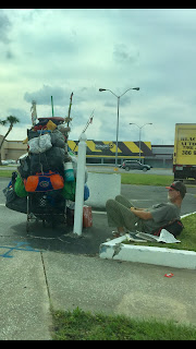 I named this guy (to myself) "Hoarder on wheels." Gosh his day would be easier if he got a job! I'd die if I had to push that whole thing all day. He was thin as a rail and looked exhausted. It was a thoughtful analogy for me saying, life can be hard but we often make it way more difficult ourselves. Or the old saying "What you own, owns you" either way I TOTALLY got the message.